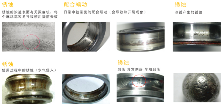 故障和失效的原因 由于滾動(dòng)軸承的結(jié)構(gòu)和使用不同,導(dǎo)致其失效的原因多樣化。主要包括:裝配不良、潤(rùn)滑不良、過載、沖擊、振動(dòng)、磨料或有害液體的侵入、環(huán)境溫度過高或過低、材質(zhì)缺陷、制造精底低和散雜電流的作用等。
